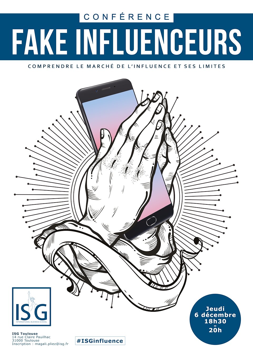 Conférence organisée à l'Institut Supérieur de Gestion (ISG) autour des des influenceurs payés par les marques pour promouvoir leurs produits par opposition aux "vrais" influenceurs indépendants.