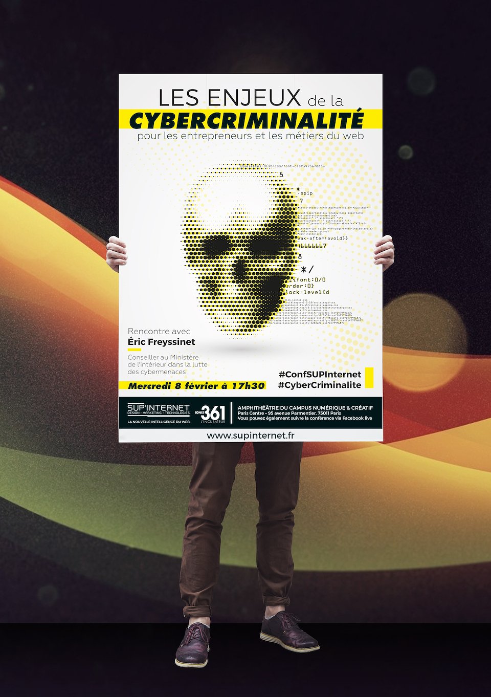 Affiche réalisée à l’occasion d’une conférence sur la cybercriminalité animée par Eric Freyssinet, conseiller au ministère de l’intérieur dans la lutte contre la cybercriminalité