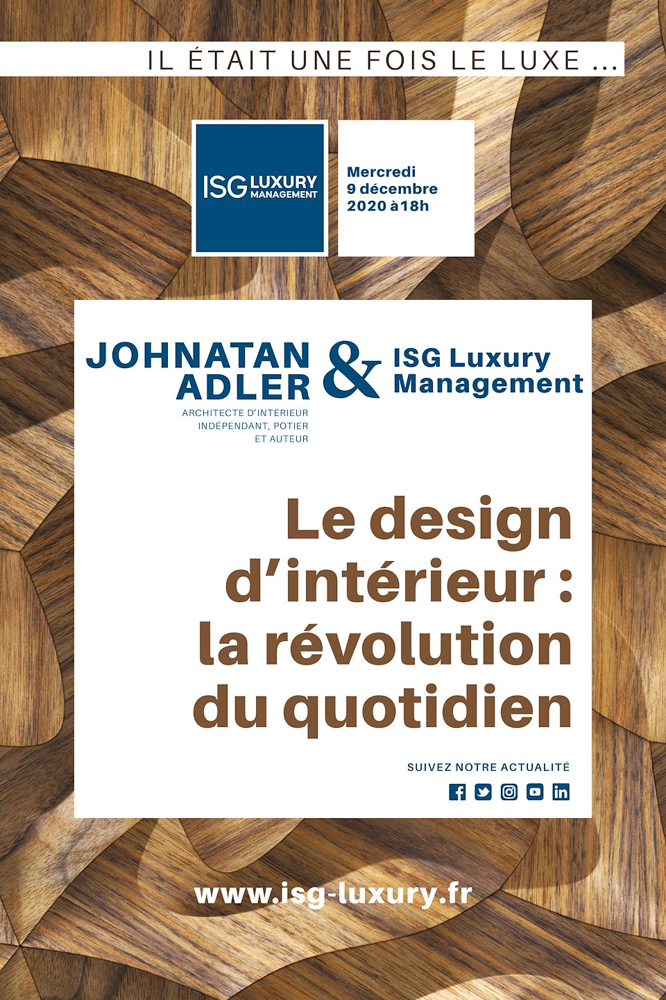 Templates pour des sessions de visioconférences à l'ISG Luxury Management avec des invités / professionnels reconnus dans leur domaine, ici le design d'intérieur.