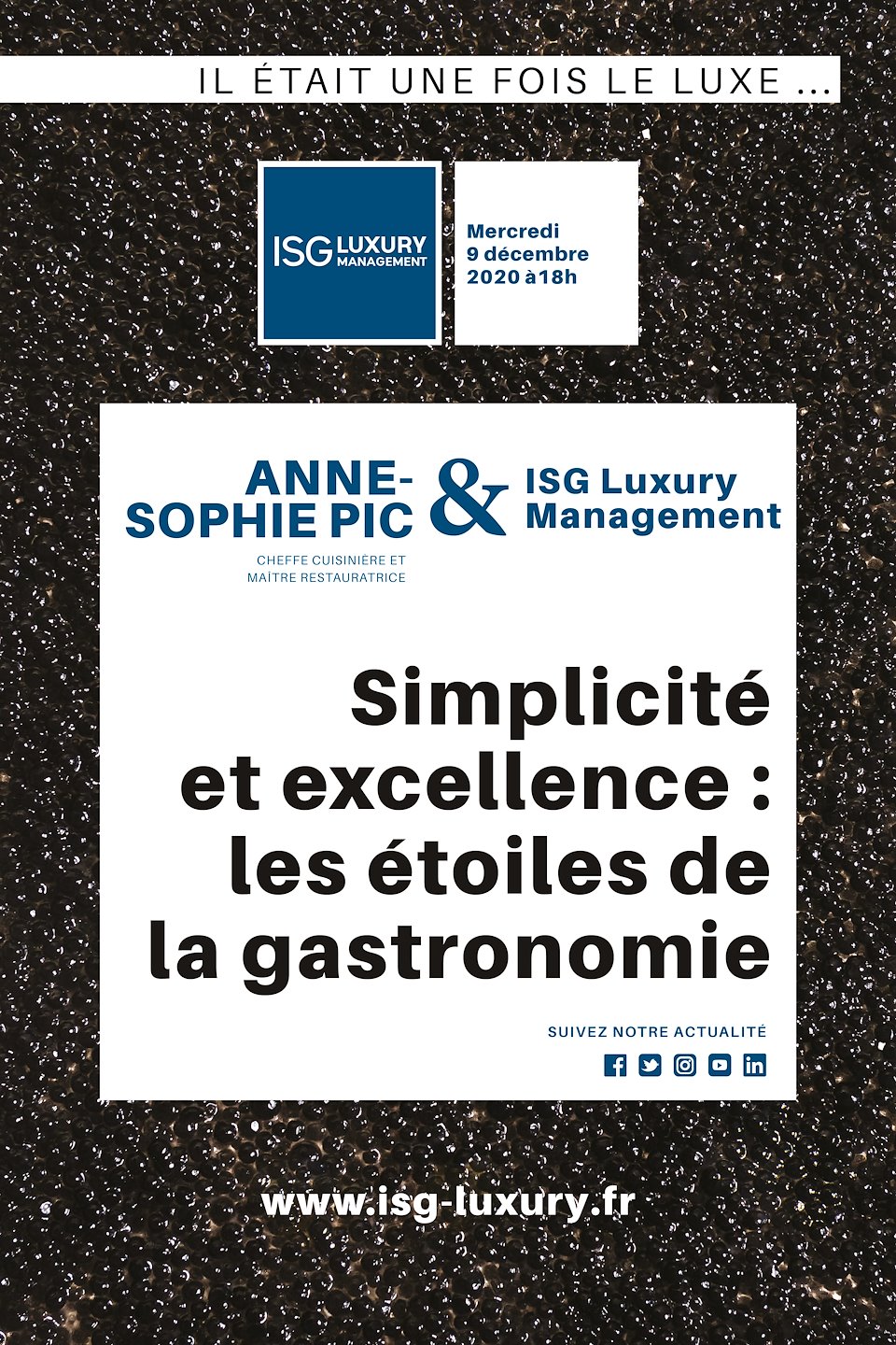 Templates pour des sessions de visioconférences à l'ISG Luxury Management avec des invités / professionnels reconnus dans leur domaine, ici la haute gastronomie française.