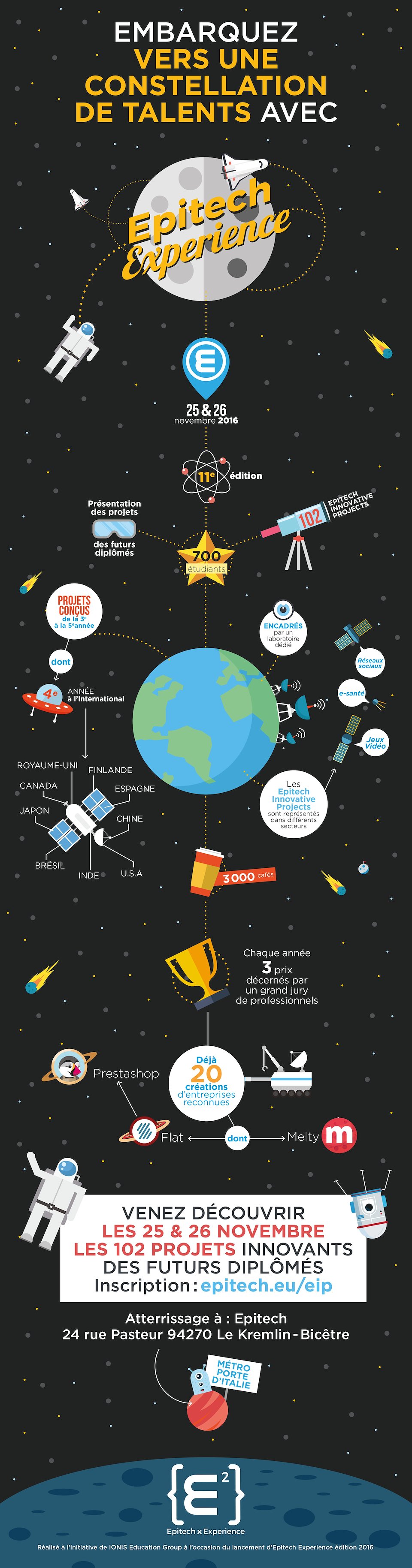 Infographie réalisée à l’occasion des projets de fin d’études de l’école Epitech, ce mailing est transmis aux journalistes, relations publiques, CM… intéressés par l’événement