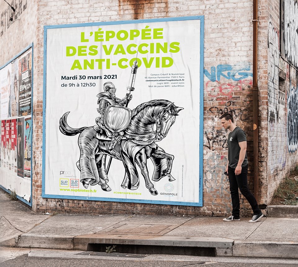 Affiche réalisée pour SUP'Biotech / Débats autour de la défiance d'une partie de la population concernant le vaccin contre la Covid 19 et ses variantes.